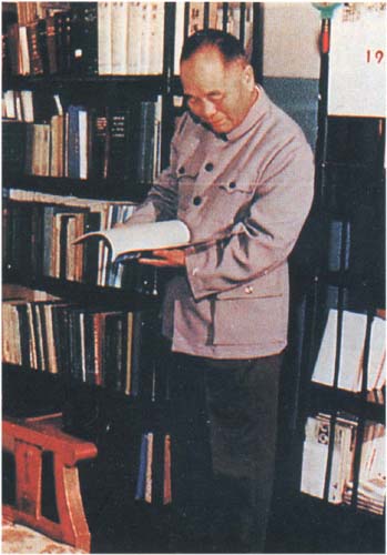 理論物理學家、中科院院士程開甲長期從事核試驗及核能開發與利用的研究工作,曾獲國防科工委先進科技工作者稱號。圖為程開甲正在工作。