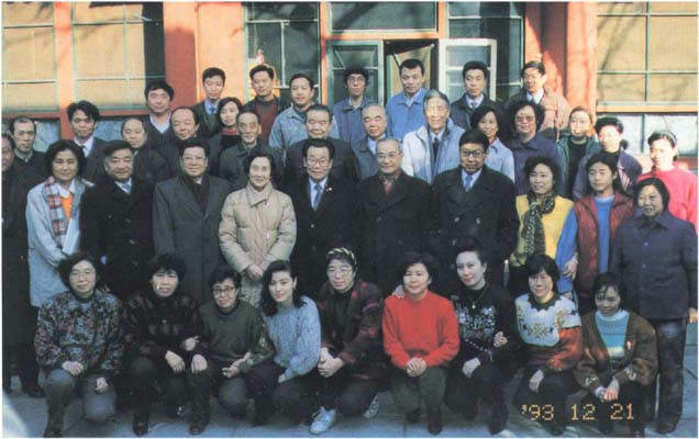 1993年12月,李瑞環等領導同志來到九三學社中央機關看望機關全體同志,并與社中央領導和機關全體工作人員合影留念。