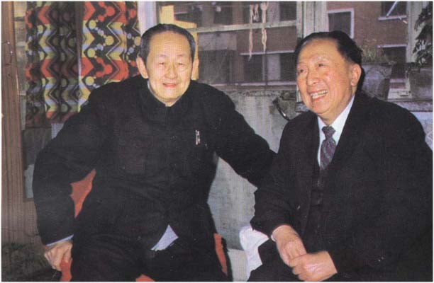 吳階平主席(右)與九三學社中央參議委員會副主委柯召在一起親切交談。