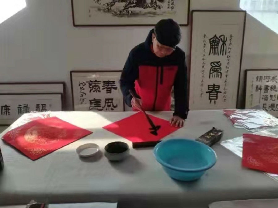 活動現場翰墨飄香,書畫家們凝神運筆、揮毫潑墨,用精湛的藝術造詣、豐富的書法風格書寫出一幅幅或遒勁有力、或奔放灑脫的書法作品,為社區居民“送福送春聯”。300余幅吉祥喜慶的“?!碧陀榧{福的春聯,表達了書畫家們對社區居民的美好祝福和對新時代新生活吉祥如意的憧憬與展望。