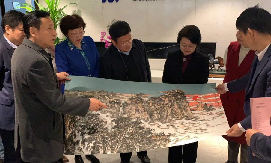 九三學社濟南書畫院院長張輝向濟南市政設計集團贈送了九三學社書畫家們創作的書畫作品。(九三學社濟南市委 王麗)