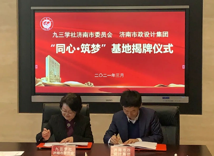 為充分發揮九三學社濟南市委和駐濟科研院所的優勢,共同助力濟南市經濟社會發展,3月4日,九三學社濟南市委和濟南市政設計集團共同舉行“‘同心·筑夢’基地”揭牌儀式。