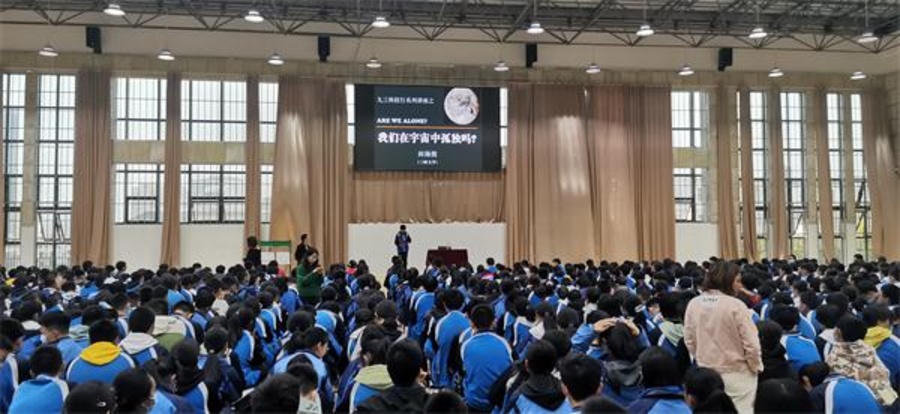 田海俊從地外生命與文明是否存在、太陽系內生命的搜尋、系外行星的搜尋、智慧生命的搜尋和人類目前對宇宙的認識等方面,向宜昌市八中的學生們進行講解。他從“地球生命在宇宙中是否獨一無二”這一疑問開始,激發學生們的好奇心,隨后展示了很多國際領先水平的高倍望遠鏡所觀測到的圖片、動畫演示以及身邊事例和海量數據,向學生們介紹在宇宙中發生的故事和近期國際天文形勢,讓同學們掌握最新天文動態。講解深入淺出,通俗易懂,風趣幽默,同學們被深深吸引,互動活躍并不時發出驚嘆。