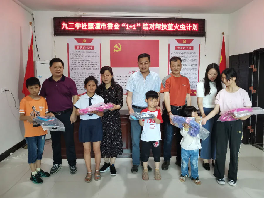 “1+1”結對幫扶“螢火蟲”計劃,是九三學社鷹潭市委會在圓滿完成“精準扶貧、脫貧攻堅”任務后,履行社會服務職能的一種新的嘗試。其宗旨是資助農村貧困的小學生圓滿完成學業、學會感恩社會,長大后回報社會。資助者和貧困學生“一對一”結對幫扶,每月資助固定金額,持續資助貧困生完成九年義務教育,直至高中、大學的學業。