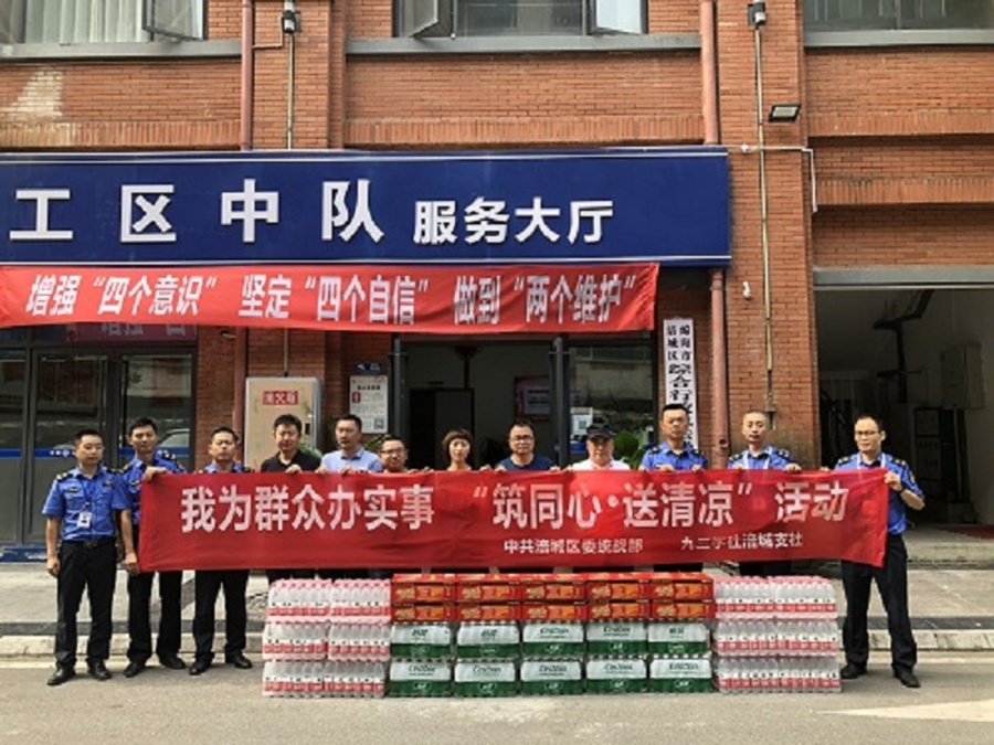活動組對涪城區綜合行政執法局工區一中隊的一線行政執法人員進行了慰問,送去了涼茶、礦泉水等清涼物資。