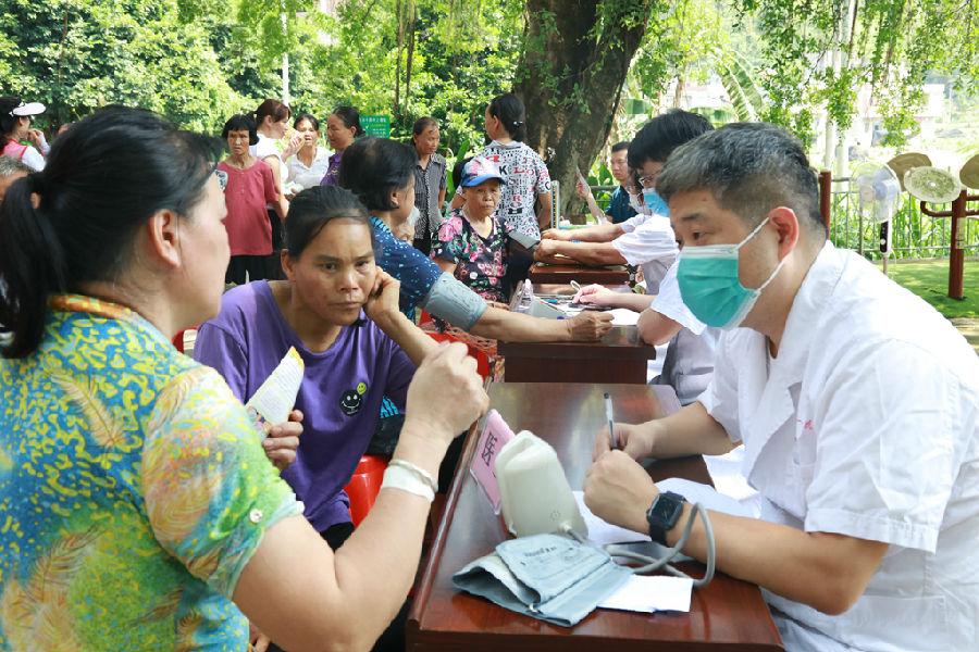 上午,志愿服務隊剛抵達平養村村委,顧不上路途勞累,立即分成義診醫療及法律咨詢兩個小組,為村民群眾提供志愿服務。醫生們頂著高溫酷暑,對前來問診的村民群眾給予測量血壓和體格檢查,對患病群眾給出了治療建議和需要注意的事項,并送上治療需要的藥品,指導合理就醫用藥,熱心講解定期體檢和改變不良生活習慣的重要性,并溫馨提醒在炎熱夏季做好防暑措施。