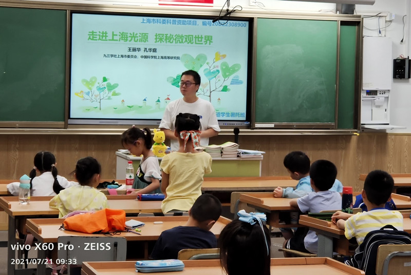 暑假開始啦!小朋友們的暑假生活怎么度過,暑托班內容充實嗎?7月21日上午,在浦東新區三林鎮中心小學,九三學社上海市委科普講壇走進東明路街道暑托班,特別邀請中國科學院上海高等研究院孔華庭老師為孩子們帶來一場主題科普活動——“走進上海光源,探秘微觀世界”。