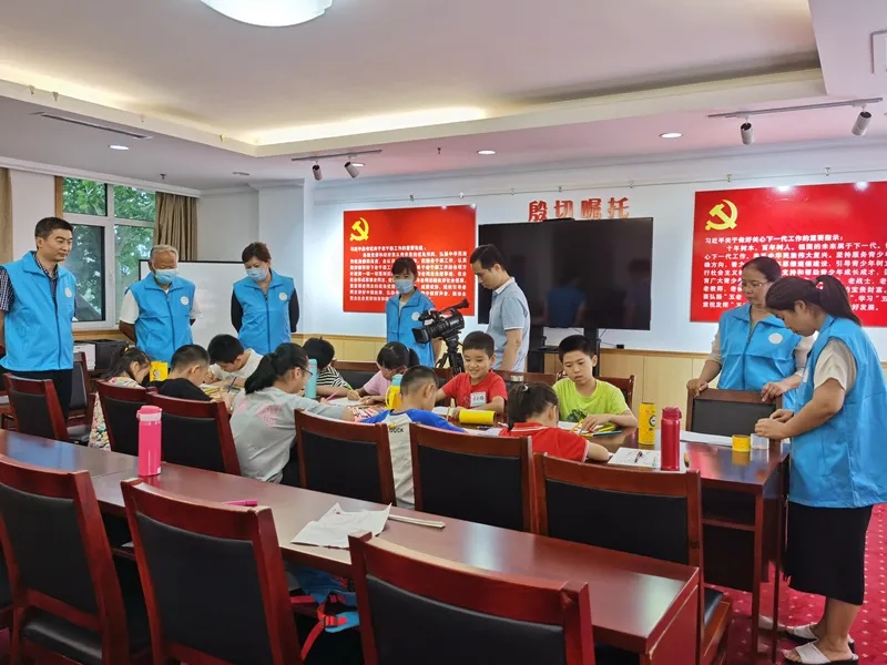 寬敞整潔的活動室里,天真活潑,幼稚童趣的少年兒童,在志愿者的指導下認真繪畫、涂色,不時發出爽朗的笑聲。