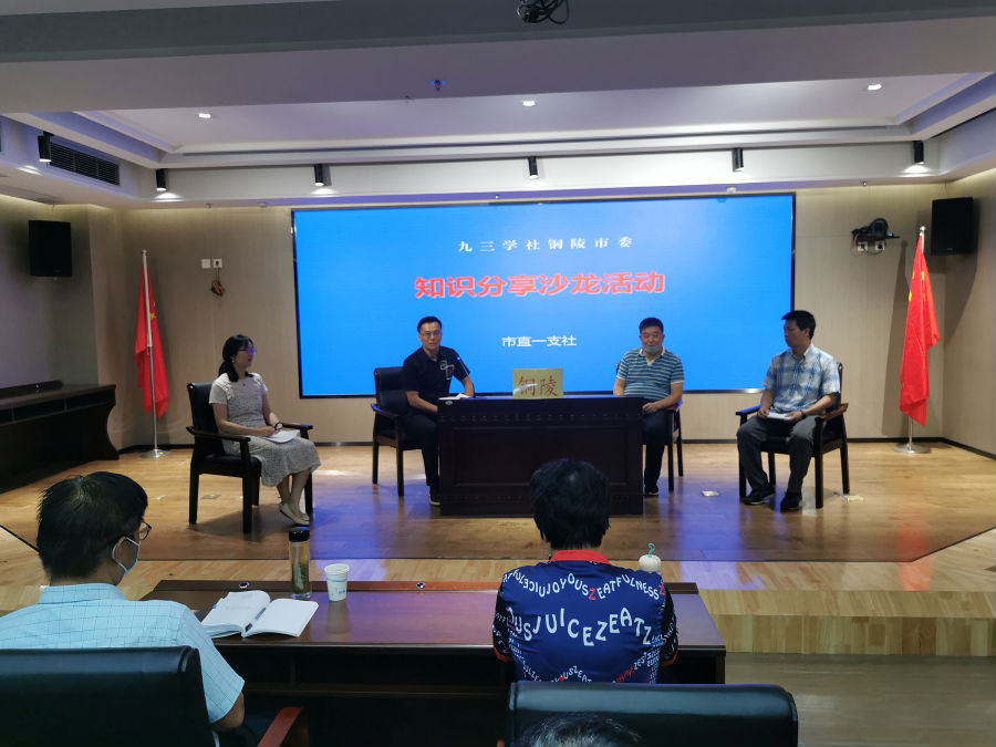 8月15日下午,九三學社銅陵市委在市審計局5樓會議室舉行知識分享沙龍活動,活動由九三學社市直一支社主辦,九三學社銅陵市委主委吳強、副主委謝玨、秘書長汪高社參加活動。
