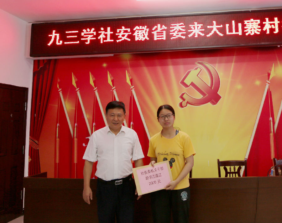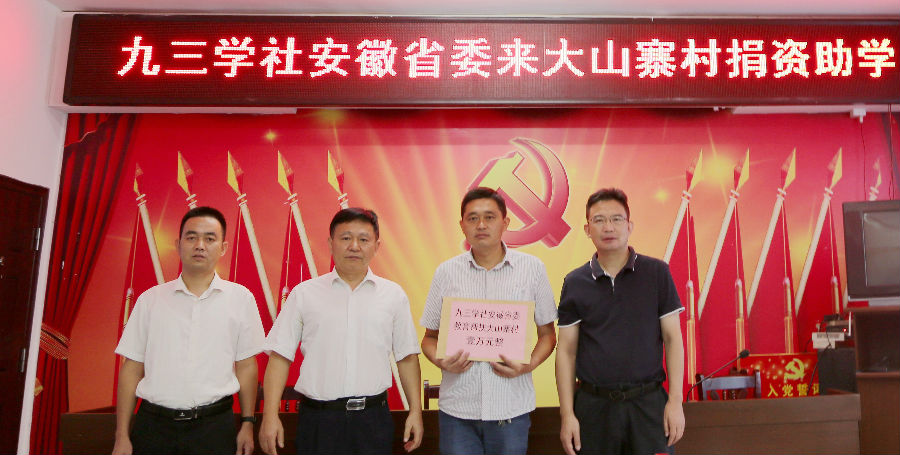 8月27日上午,九三學(xué)社安徽省委副主委李益湘率隊赴六安市毛坦廠鎮(zhèn)大山寨村開展捐資助學(xué)活動,向大山寨村捐贈教育幫扶資金10000元,向一名困難家庭學(xué)生捐贈助學(xué)金2000元,這是九三學(xué)社安徽省委機關(guān)干部和中水三立數(shù)據(jù)技術(shù)股份有限公司連續(xù)第六年捐款。