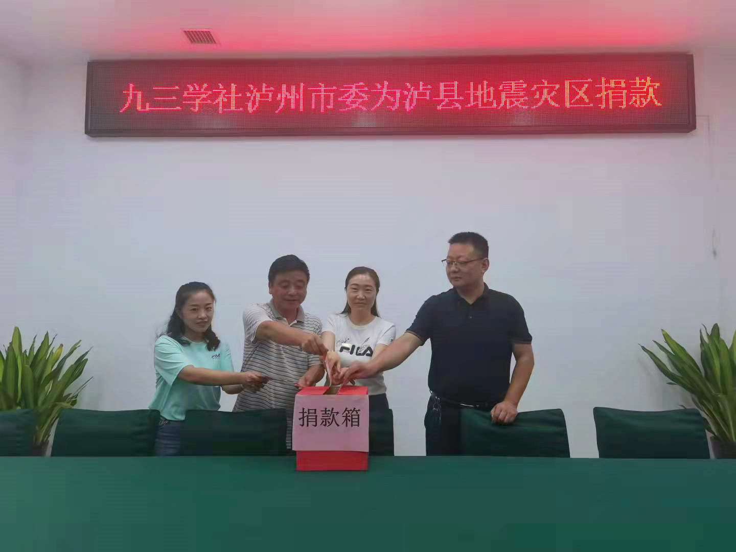 2021年9月16日4時33分,瀘縣發生6.0級地震。地震發生后,九三學社瀘州市委第一時間發出支援瀘縣地震災區倡議書,與各級機關企事業單位和社會各界群眾一道,發揚一方有難、八方支援的精神,紛紛慷慨解囊,鼎力相助。廣大社員已通過慈善總會匯款、支社集中捐款、所在單位集中捐款等各種渠道捐款捐物,以實際行動向瀘縣地震災區伸出援助之手,展示九三學社社員的博愛情懷。