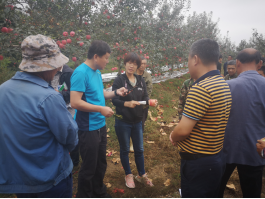 2021年9月17日,由九三學社營口市委科技助農工作隊副隊長隋韶奕帶隊,隊員劉志研究員、張秀美副研究員和特別邀請的省果樹科研所蘋果栽培專家于年文研究員一行,在大石橋市農業農村局何主任、農業中心王主任以及前仙峪崔書記陪同下,來到大石橋市黃土嶺鎮前仙峪村,開展蘋果栽培技術指導。