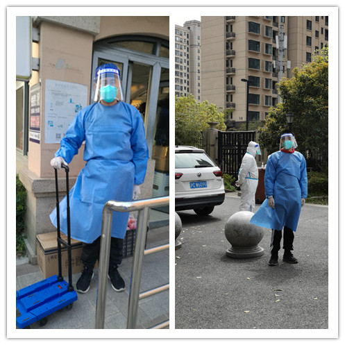 在浦西封控期間,他又響應號召下沉至居委會,成為小區志愿者,負責引導所在樓棟核酸檢測篩查工作,發放物資、生活垃圾集中上門收集丟棄以及幫助住戶取送快遞等。