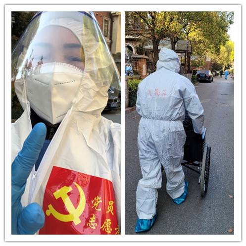 這波疫情開始,已年逾六旬的主任醫師朱梅萍所居住在寶山區美蘭湖香島原墅,雖然沒有封閉,但居委干部在業主群里招募志愿者,她立即報名參加。3月18日輪到該小區網格化核酸篩查,朱梅萍當起了志愿者,主要負責居民測核酸時維持秩序,提醒居民保持安全距離;3月28日,根據全市安排,浦東開始封控,志愿者分成三個小組:(1)核酸檢測維持秩序組;(2)通知居民做核酸組;(3)居民生活保障組。朱梅萍考慮到自己是醫務工作者,報名居民生活保障組,主要擔任居民生活物資配送、快遞配送、小區巡邏勸阻擅自走出家門的居民,幫助有需要的居民配藥。期間已幫2位居民配藥,小區二次核酸抗原檢測時,她挨家挨戶上門送檢測盒。朱梅萍說:“也沒做什么,就是做做志愿者,利用自己的專業知識幫助社區居民。”