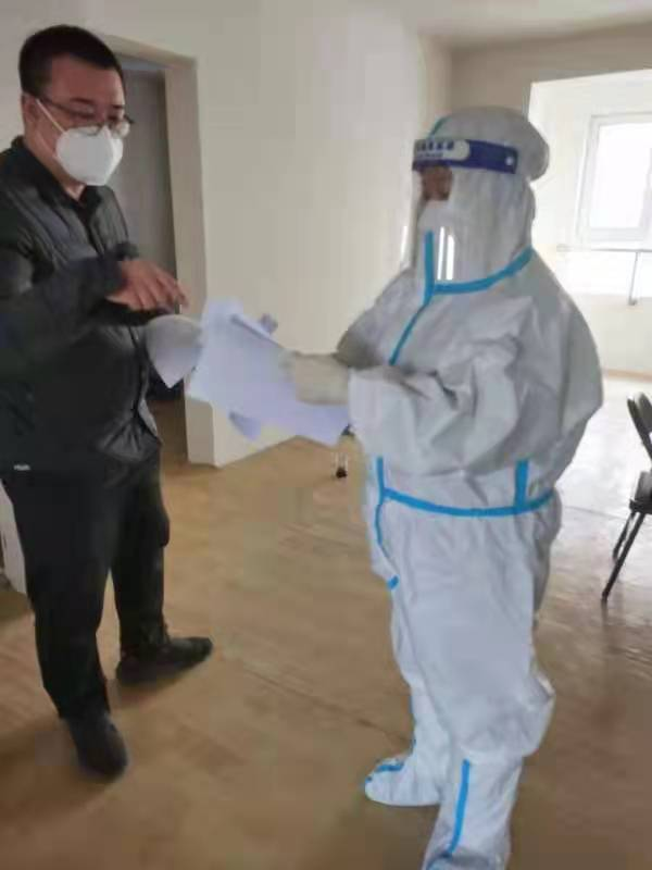 許印登雖然在來隔離點前就崴腳了,但他還是義無反顧地參加了志愿服務,每天堅持為隔離人員運送物資。除此之外,他還要負責統計物資、核酸檢測、監控及門禁、消殺與垃圾運輸等各類信息數據及時報送路北區相關部門。