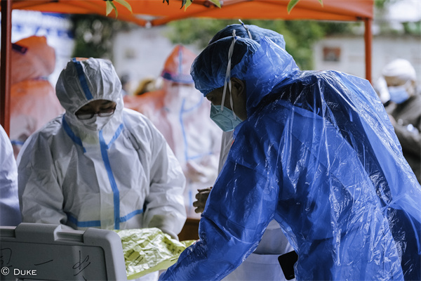 還有周小紅、郭燕華、邱飛、馬向陽(yáng)、呂璨等社員活躍在核酸檢測(cè)的一線,不分晝夜、隨時(shí)待命,在采樣點(diǎn)一站就是七八個(gè)小時(shí),克服身體和心理的不適,為紅、黃碼人員和行動(dòng)不便人員上門開展核酸檢測(cè),確保核酸檢測(cè)不漏一戶,不漏一人。李芬、蔡曄、李明、滕嵐、楊遠(yuǎn)輝等社員堅(jiān)守崗位,連續(xù)多天吃住睡全部在醫(yī)院科室,保障了醫(yī)院的安全和正常運(yùn)轉(zhuǎn)。