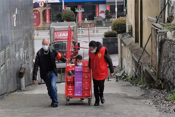 一壇壇腌菜、一塊塊臘肉、雞蛋等組成的5000公斤蔬菜、2000斤冰糖橙,4000斤大米,200件礦泉水,200提衛(wèi)生紙等物品是社員向秀勝、田海峰把麻陽(yáng)高村鎮(zhèn)土潭村老百姓的拳拳愛心送到了懷化疫情的封控區(qū)。