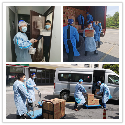 他們的每一天是充實和忙碌的。在中科院上海分院和嘉定工業區領導的關心下,科嘉人才苑得到了非常多的生活物資,而這些物資都需要志愿者來運送,加上人才苑內學生每天的一日三餐,志愿者的任務非常繁重。配送名單要一一核對,需要的是細心,考驗的是耐心。志愿者們齊心協力、任勞任怨,常常剛卸車,還沒來得及分好,學生的盒飯又到了;剛送完盒飯,又通知團購的菜來了要去分發。志愿者們回到家,防護服內的衣服也已濕透。某天風大雨急,志愿者們更是一手撐著東倒西歪的傘,一手拖車,還要保護物資不被淋濕,場景可想而知。但一想到這些食物可以解決大家的燃眉之急,不僅沒有怨言,心里還充滿成就感。