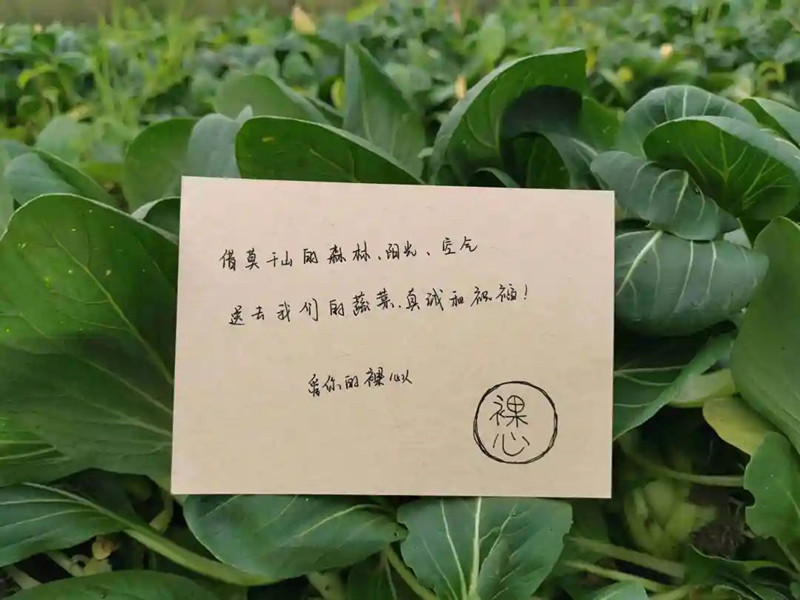 物資抵達(dá)嘉定時(shí),禮包中的蔬菜還帶著新鮮的水汽與泥土的清香。打開(kāi)包裝袋,一根碩大的春筍十分引人注目。一旁綠油油的青菜也同春筍一樣,都是在4月15日清晨由愛(ài)心企業(yè)、志愿者在田野中現(xiàn)采的。