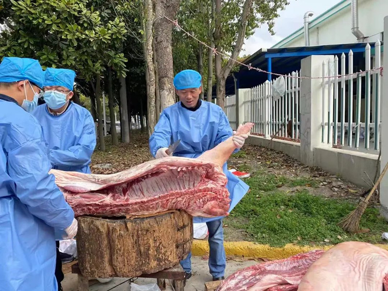 經(jīng)過(guò)與上海市擁軍優(yōu)屬基金會(huì)嘉定區(qū)工作委員會(huì)、三個(gè)街鎮(zhèn)黨委協(xié)商,協(xié)調(diào)了動(dòng)物檢疫檢驗(yàn)、臨時(shí)加工點(diǎn)、物資分配方案等后續(xù)工作。