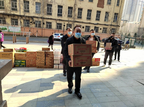4月18日,中共哈爾濱市道外區委常委、統戰部長李建新,九三學社道外區第二聯合支社主委、青企協三團團長孫慶濤及社員、會員代表到南直街道慰問堅守在疫情防控一線的社區工作人員和志愿者。