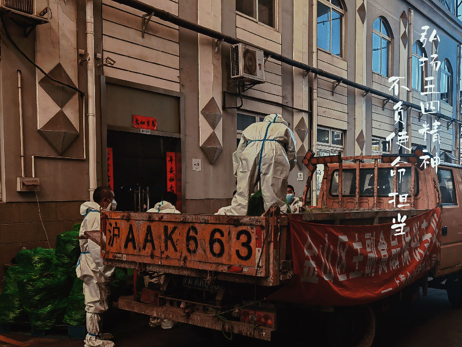 4月2日晚,為了保證市里配送的20多噸蔬菜能夠及時運送到朱涇鎮和楓涇鎮,他主動要求跟車,帶領貨車司機以最高的效率完成這次配送工作,回到公司后已經是凌晨三點了。他堅持做好每一天的工作,目的只有一個,在封控期間為金山區市民保障供應。