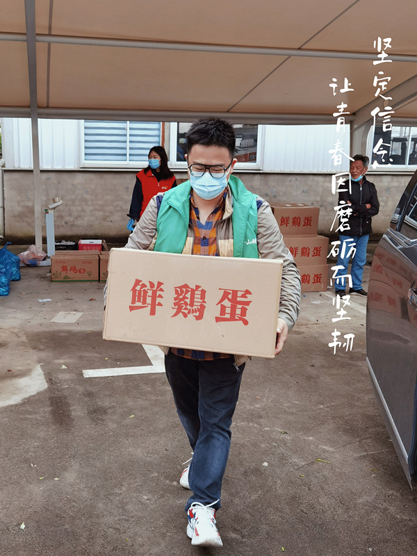 疫情大禮包的發放,時間緊數量大。為了減少居民區負擔、保證分裝的安全,街道指派他組織近300名同志奮戰了2天2夜分裝了4萬份的疫情大禮包,從運輸卸貨到成袋分發、從防護穿戴到餐食保障,從場地搭設到場所消殺圓滿完成任務。