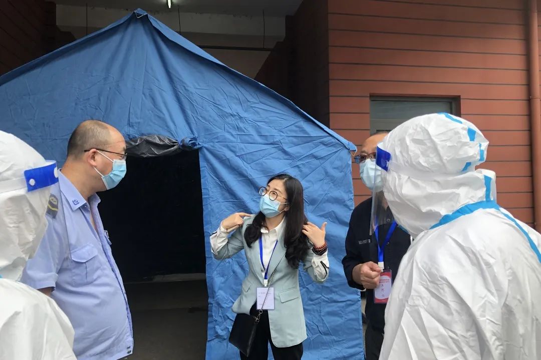 到達江陰后,眼見安靜的城市、冷清的街道,許波銀不禁想起了4月的通城。晚上8點到達駐地,她簡單整理,便開始安排工作計劃:梳理當地疫情發展情況和目前已采取的防控措施、推敲疫情防控可能存在的薄弱點、確定后續工作重點。翌日,她便迅速投入到當地抗疫戰斗中。各級醫療機構、核酸采樣點、黃碼人員收治醫療機構、方艙實驗室、急救中心、封控區、大街邊都能看到她的蹤跡。