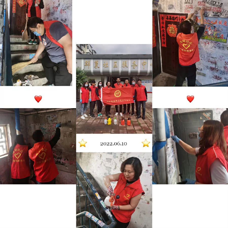 明山支社組織21位社員深入北地街道辦事處街道育欣社區,開展以“山城換新顏”為主題的社會服務活動。活動中,社員們對背街小巷、住宅小區、墻體上涂寫、刻畫或者未經批準張貼的宣傳品、非法小廣告等進行清除,購買60桶乳膠漆用于粉刷清理后的老舊小區樓道。在居民小區內的顯著位置懸掛創城宣傳標語,營造“全民創城”的氛圍,并主動參與社會監督,積極勸阻和制止不文明行為,以自己的模范行為帶動小區居民,共同倡導文明行為習慣,爭做文明市民。