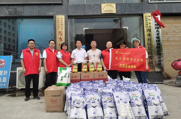 近期,懷化市麻陽縣受強降雨持續影響,導致河水暴漲、山體滑坡,多處房屋受損嚴重,部分鎮村不同程度的受到影響,給農業生產和人民群眾生活帶來了嚴重影響。一方有難,八方支援。7月1日,在中國共產黨成立101周年之際,九三學社懷化市委會滿載大米、食用油等物資的貨車停在了麻陽縣高村鎮漫水社區。“物資到了!”受災村民代表們臉上掩蓋不住激動。這是由九三學社懷化市委會志愿服務隊組織社員志愿者們捐贈給麻陽縣高村鎮漫水社區和大溪橋村受災群眾的生活物資。