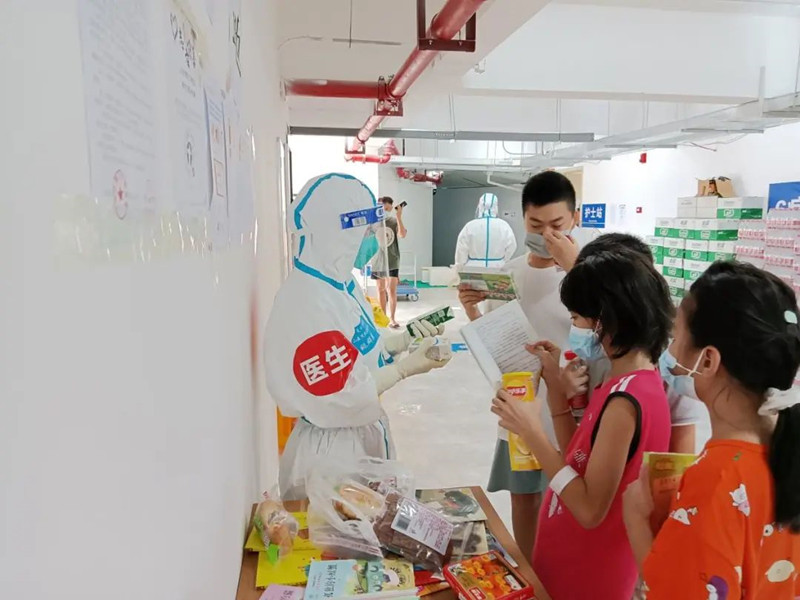 “三亞雖然濕熱,但總體氣溫比上海低,體感比上海涼快些”,姚群燕樂觀地說。因為是消化科醫(yī)生,姚群燕在艙內(nèi)還特別關(guān)注患者的飲食,“我們方艙里兒童比例偏高,還有一些孕婦,醫(yī)療隊物資保障還比較充足,有些患者反映飯硬,我會把多的面包、牛奶、水果帶一點(diǎn)進(jìn)方艙,給病區(qū)里進(jìn)食不太好的小孩或孕婦。”