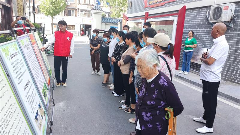 9月21日下午,開封市汴東社區的門口人頭攢動,社區的居民們聚在一排野生動物保護主題的科普宣傳展板前,聆聽科普志愿者的細心講解。