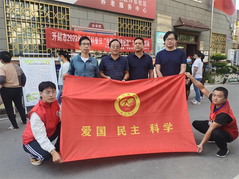 這是九三學社開封市委與汴京公園、開封市科學技術協會、順河回族區宋門辦事處汴東社區聯合舉辦的開封市2022年全國科普日“生物保護進社區”科普宣傳活動。活動現場懸掛著科普宣傳橫幅,擺放著科普宣傳展板,還有志愿者現場答疑解惑,發放科普宣傳手冊,向社區居民普及生物保護的相關知識,號召大家自覺保護動植物,促進人與自然和諧共生。