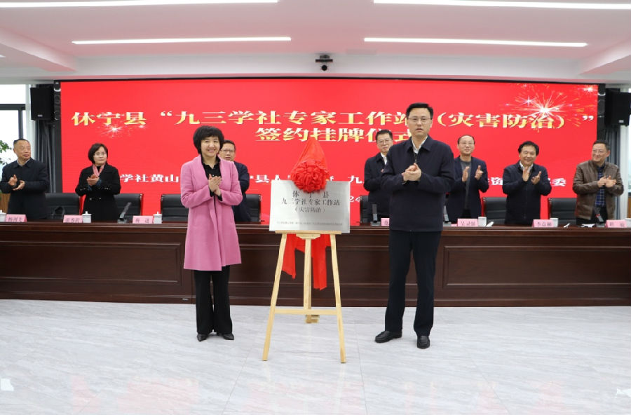 3月24日下午,“九三學社專家工作站(災害防治)”簽約掛牌儀式在黃山市休寧縣隆重舉行。九三學社中央社會服務部副部長蔣承華,九三學社安徽省委專職副主委范立新,九三學社黃山市委主委吳靈強,九三學社安徽省委原副主委李益湘,九三學社河北省委社會服務部二級調研員張香莉,省自然資源廳地勘處副處長王家武,中共休寧縣委副書記、縣長唐進等出席活動。九三學社黃山市委副主委程敏主持儀式。