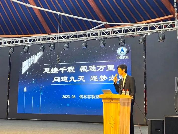 6月27日下午和6月28日上午,九三學社中央“專家科普行”先后在錫林浩特市第一中學、阿巴嘎旗職業教育綜合服務中心舉行。錫林浩特市第一中學初一年級900多名師生、阿巴嘎旗第一中學和第二中學近200名師生聆聽了中國航天科技集團五院總體設計部研究員曲少杰帶來的《思接千載 視通萬里 問道九天 逐夢太空》講座。