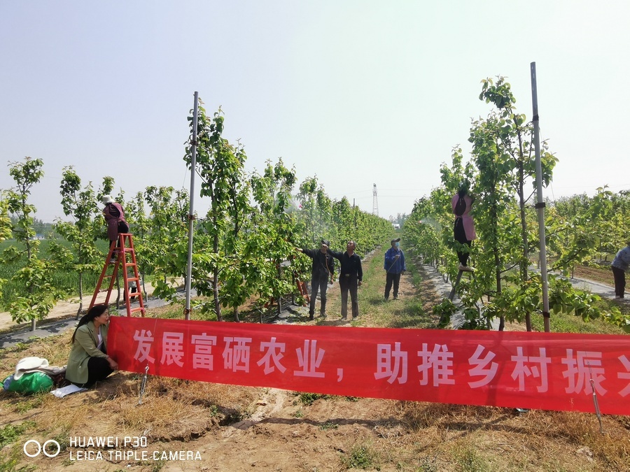4月19日,是商丘市因疫情原因有序穩妥恢復生產生活的第一天。當天一大早,九三學社河南省商丘市委主委張春華就和社內農業專家,帶著富硒噴劑,來到了虞城縣城郊鄉楊莊村,指導果農對蘋果樹進行第一遍富硒噴施,實施九三學社中央多黨合作項目“富硒產品開發與利用項目”中的果樹富硒技術噴施。