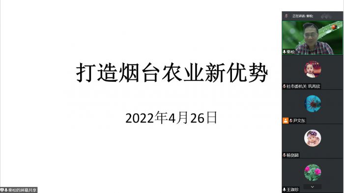 會上,秦松作了“打造煙臺農(nóng)業(yè)新優(yōu)勢”的報告,圍繞錨定走在前列目標(biāo)、國家需求和發(fā)揮煙臺海岸帶優(yōu)勢作了重點闡述,對農(nóng)業(yè)農(nóng)村專委會工作提出了希望和工作要求。張桂德介紹了農(nóng)業(yè)農(nóng)村專委會成立意圖,傳達了社中央、社省委、社市委“矢志不渝跟黨走、攜手奮進新時代”政治交接主題教育動員會精神。農(nóng)業(yè)農(nóng)村專委會主任王江春介紹了擬建立的社市委福山區(qū)同心實踐基地情況。農(nóng)業(yè)農(nóng)村專委會副主任兼秘書長楊劍超匯報了本年度專委會的工作計劃。與會委員分別進行了自我介紹,圍繞如何開展專委會工作;推動鄉(xiāng)村振興,高效開展參政議政和社會服務(wù)工作;對疫情與物流問題的看法和建議;對社市委特別是社市委機關(guān)工作的意見和建議進行了討論交流。