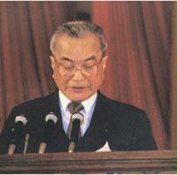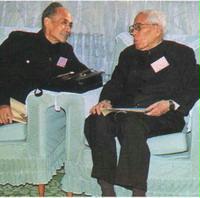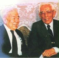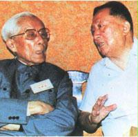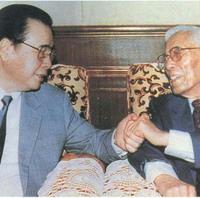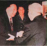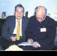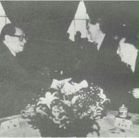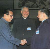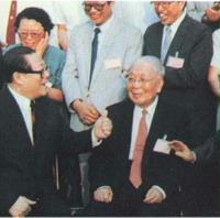 江澤民同志、楊尚昆同志與嚴濟慈名譽主席在一起親切交談