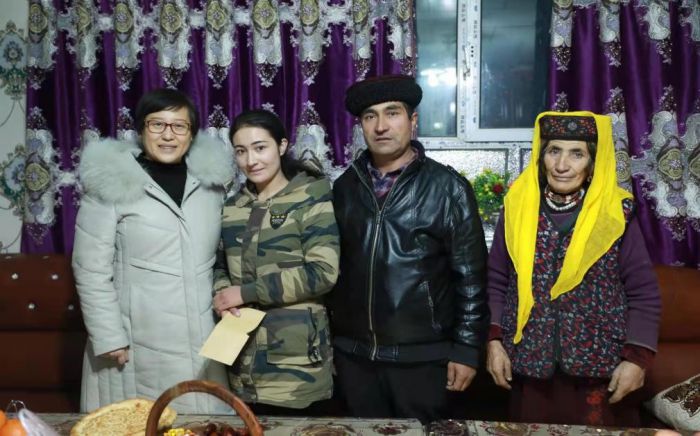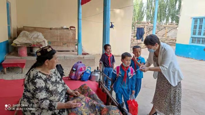 周健把扶智扶貧、促進民族團結作為援疆工作的重要議程。她主動報名參與當地的“三進兩聯一交友”活動,先后與8位少數民族學生進行結對,經常抽時間與學生們一起用餐、交心、輔導,幫助她們更好地融入民族大家庭。