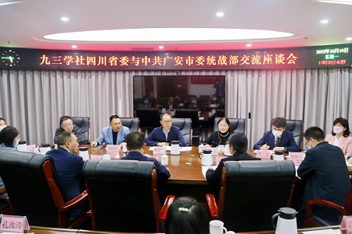 10月10日,中共廣安市委統戰部常務副部長舒偉一行來九三學社四川省委匯報武勝基地建設有關工作并召開交流座談會。四川省政協副秘書長、九三學社四川省委專職副主委陳雩楨,九三學社四川省委秘書長丁武出席座談會。
